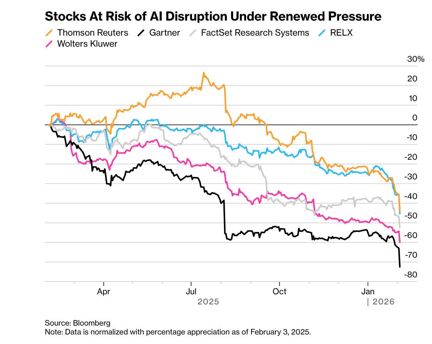 The AI transformation of our economy is starting to inflict pain on some sectors, as illustrated below: