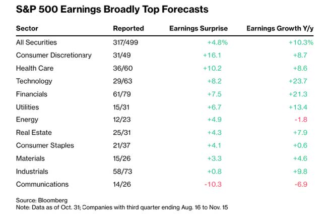 One of the key factors behind this positive performance was the better than expected third quarter corporate earnings season that started over the second part of October, as shown below: